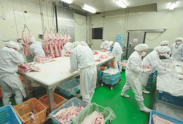弊社では、牛枝肉・豚枝肉を購入、自社工場にて解体処理し、お客さまのご要望に合わせたカッティングを行い、商品化、納品しております。